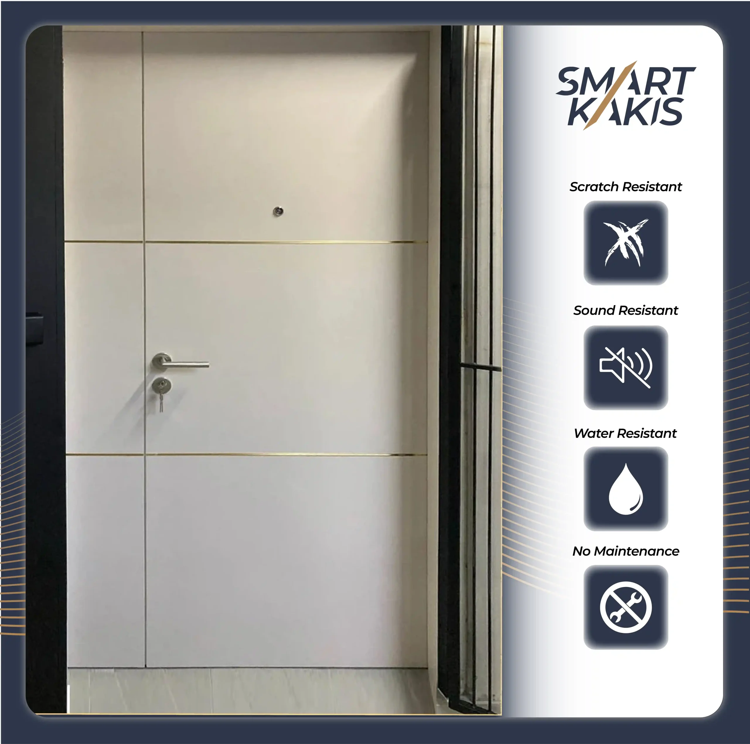 Be the first to review “Fire Rated Laminate Main Door with Stainless Steel Strip | SSFR08”