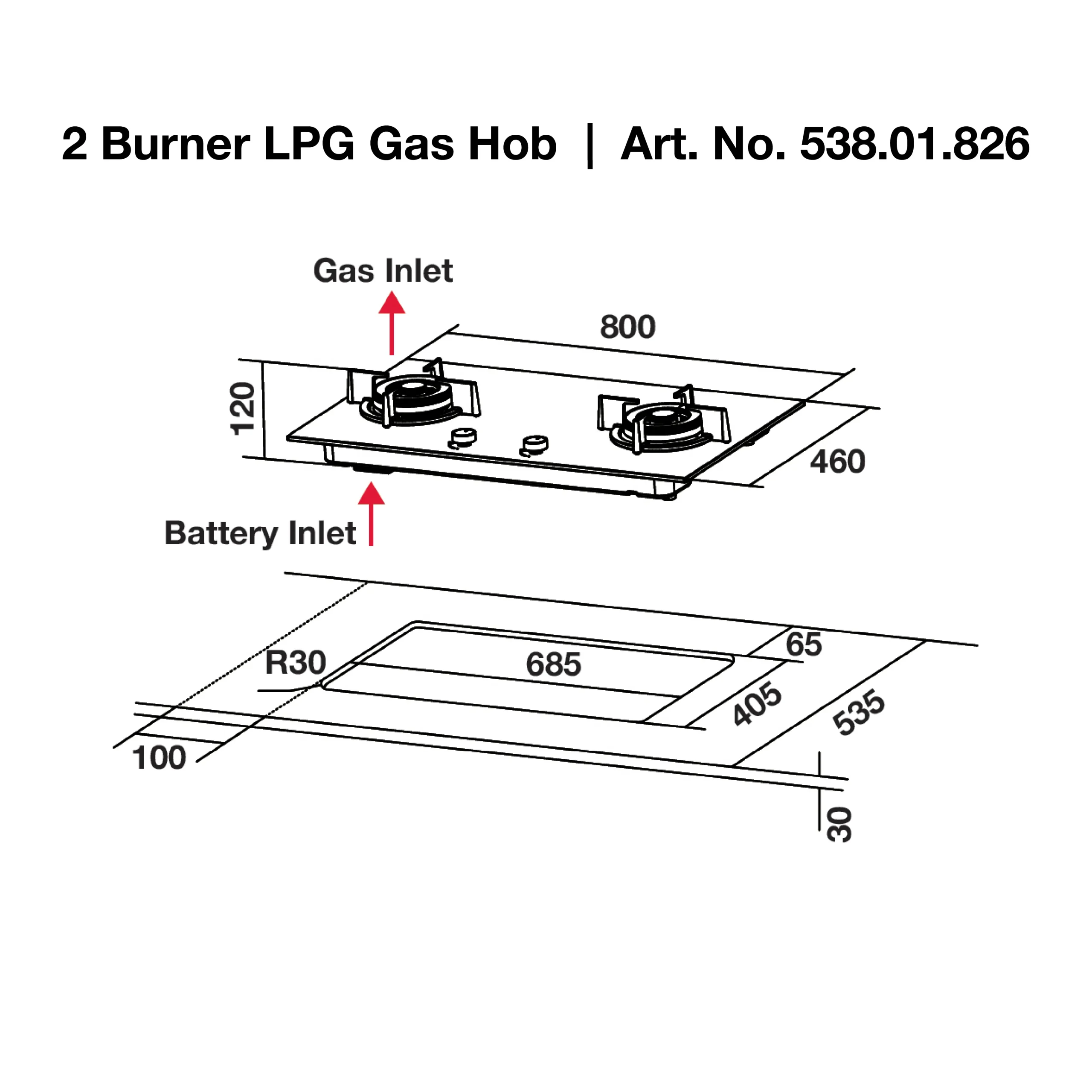 Hob Dimensions (W x D)800 mm x 460 mm