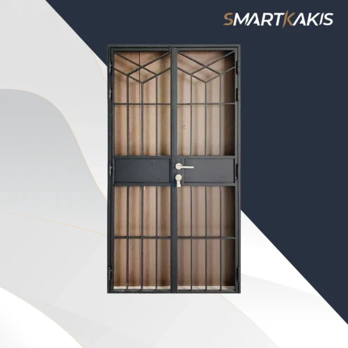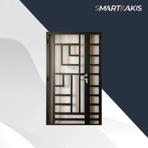The SK-522 features a clean vertical bar layout with playful geometric accents, designed to provide strong security while adding a welcoming touch to your entrance. Its standout element is the pet-friendly lower section, crafted to prevent small pets from squeezing through while still allowing airflow and visibility. A charming cut-out dog motif adds personality without overwhelming the overall modern aesthetic, making it ideal for homeowners who want a practical yet stylish gate solution.